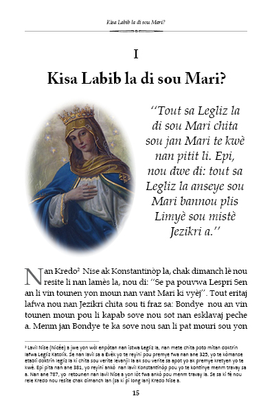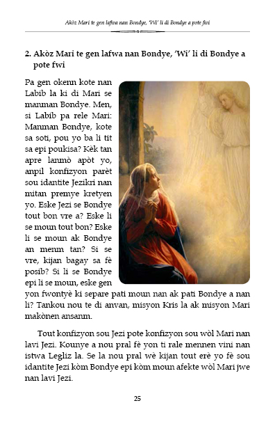 Liv sa pale de lavi Mari sou plizyè ang e li reflete imaj La Sent Vyèj ki te rete fidèl a pwomès li te fè Bondye...