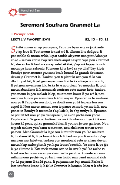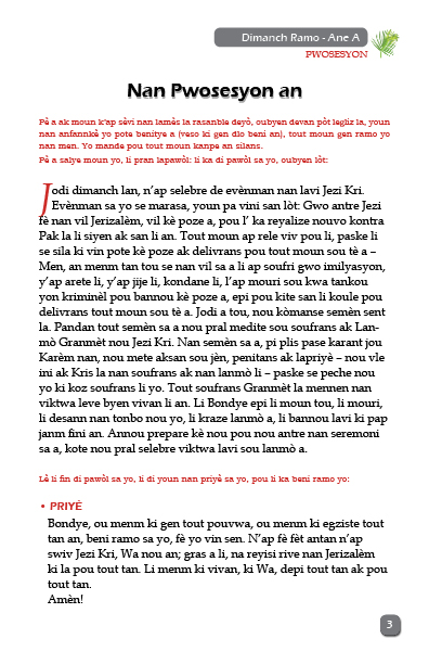 Liv sa prezante dewoulman seremoni Dimanch Ramo Ane A ak Vandredi Sen nan legliz katolik.