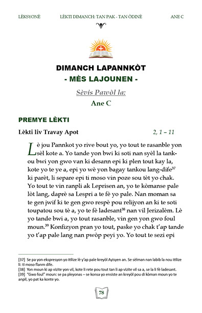 Liv sa genyen lèkti ak levanjil lamès chak dimanch Tan Lavan Tan Karèm Ane C. Yon bon Gid pou Katolik.